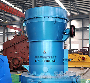 大塊狀物料經(jīng)顎式破碎機(jī)破碎到所需要粒度后,由提升機(jī)將物料送至儲料斗,再經(jīng)振動給料機(jī)均勻定量連續(xù)地送入主機(jī)磨室內(nèi)進(jìn)行研磨。粉磨后的粉子被風(fēng)機(jī)氣流帶走,經(jīng)分析機(jī)分級,符合細(xì)度的粉子隨氣流經(jīng)管道進(jìn)入大旋風(fēng)收集器內(nèi),進(jìn)行分離收集,再經(jīng)粉管排出成品粉子。
