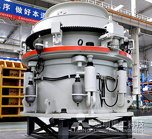 電動機(jī)通過三角皮帶、傳動軸、傘齒輪副帶動偏心套旋轉(zhuǎn),動錐在偏心套的作用下做旋擺運(yùn)動,使動錐和定錐時而靠近時而偏離。物料在破碎腔內(nèi)不斷受到擠壓、沖擊而被破碎,破碎的物料從下部排出。